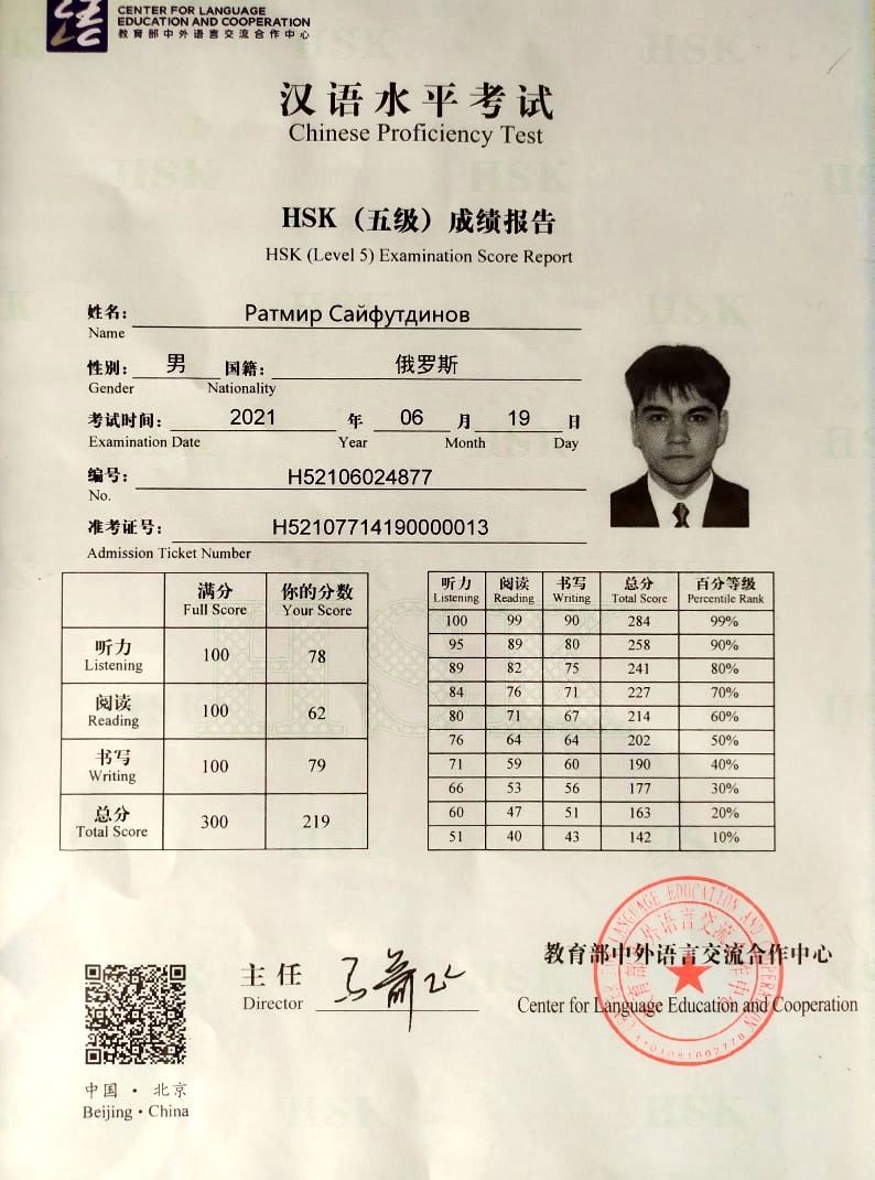Китайский: 3/5